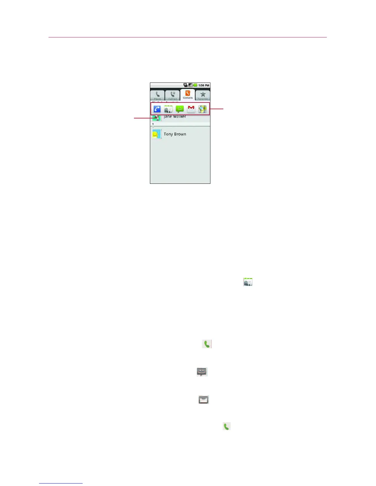 1. Touch a contact's picture to open Quick Contact for Android.