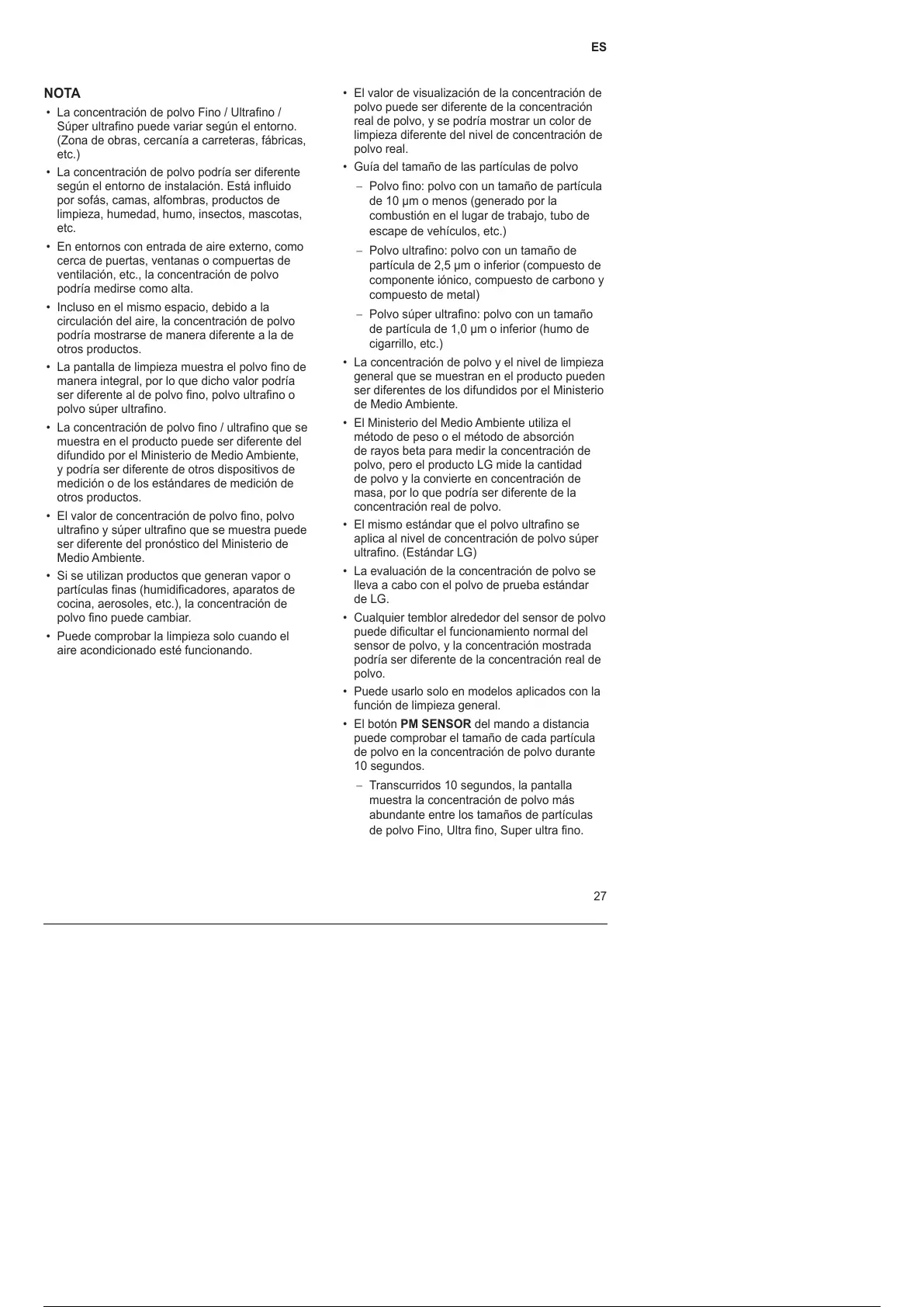 polvo, pero el producto LG mide la cantidad