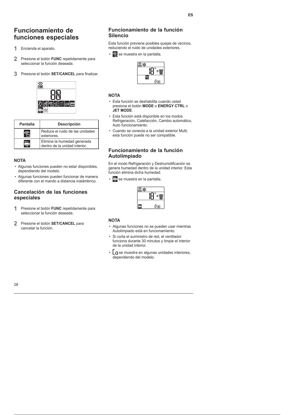 • Algunas funciones no se pueden usar mientras