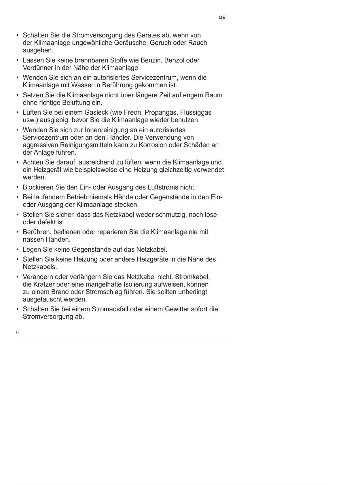 • Berühren, bedienen oder reparieren Sie die Klimaanlage nie mit