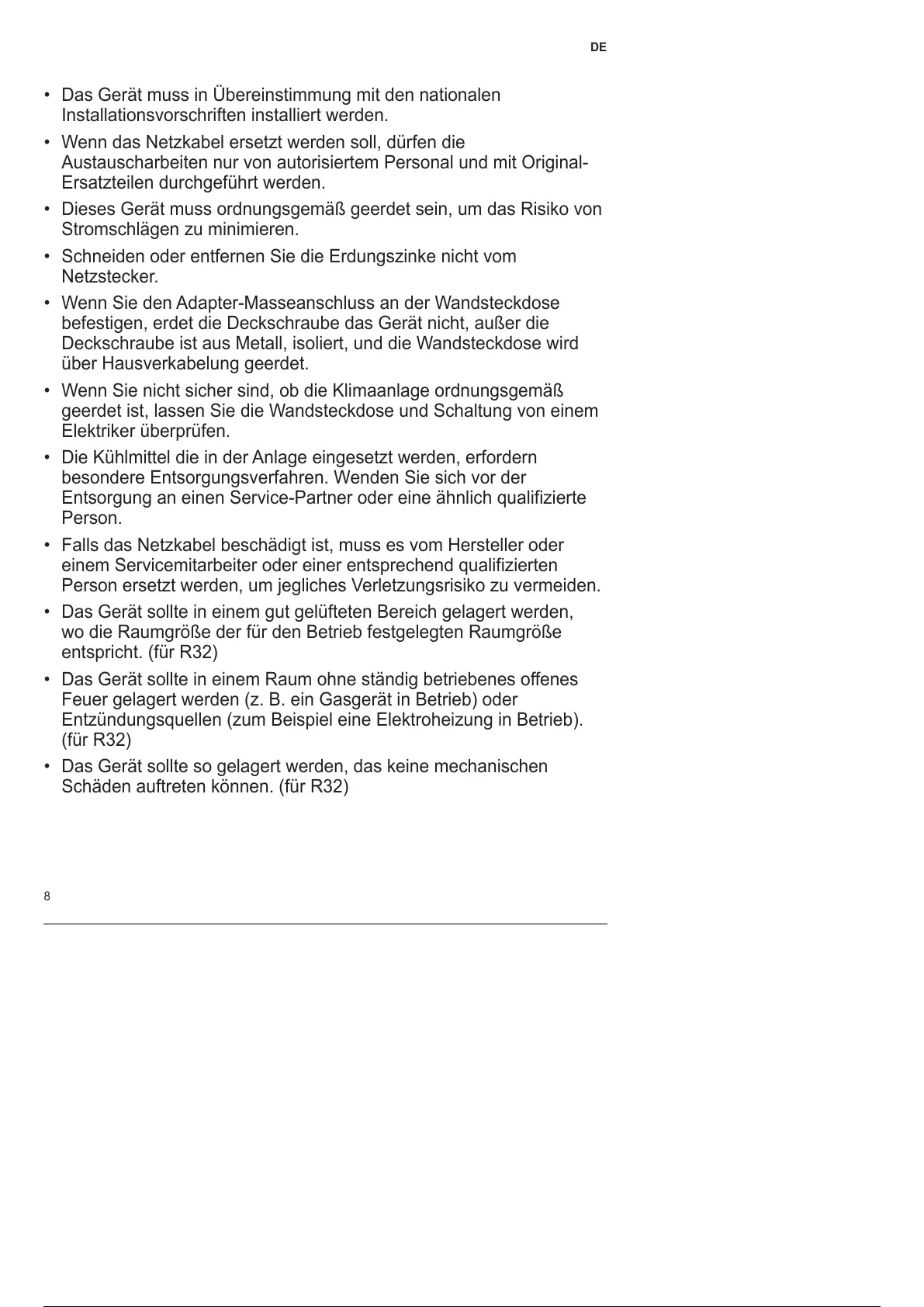 • Das Gerät muss in Übereinstimmung mit den nationalen