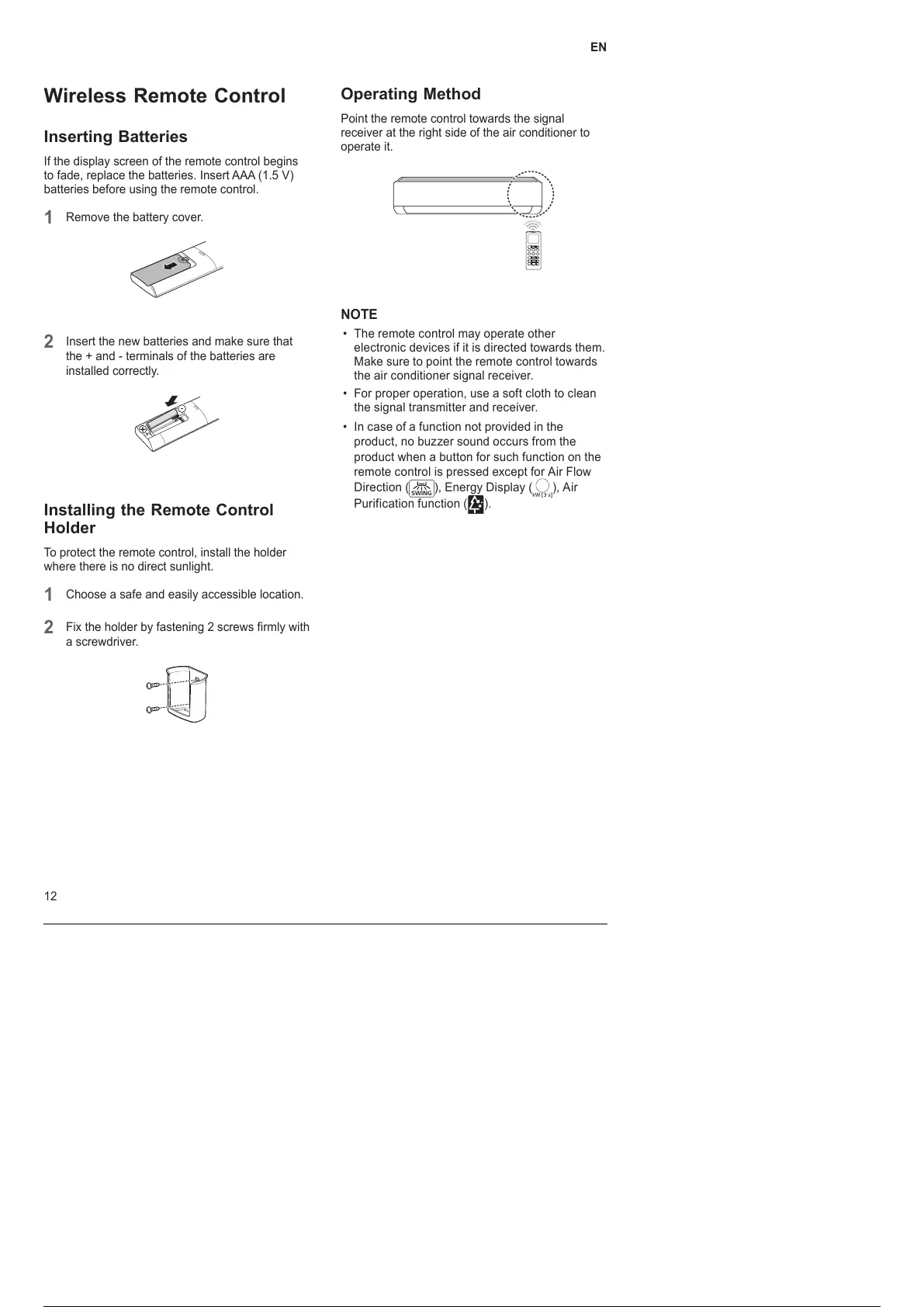 to fade, replace the batteries. Insert AAA (1.5 V)
