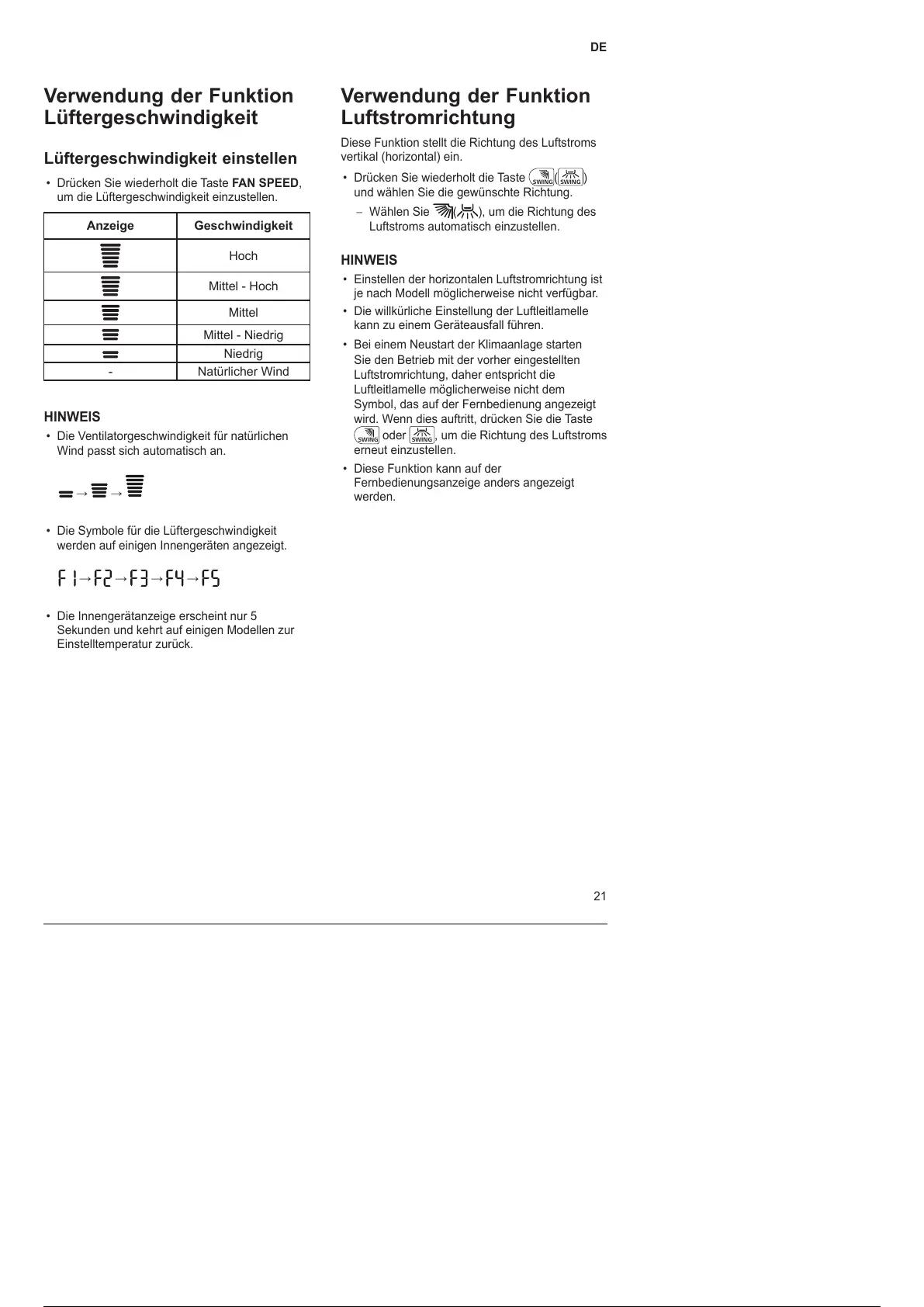 • Drücken Sie wiederholt die Taste FAN SPEED,