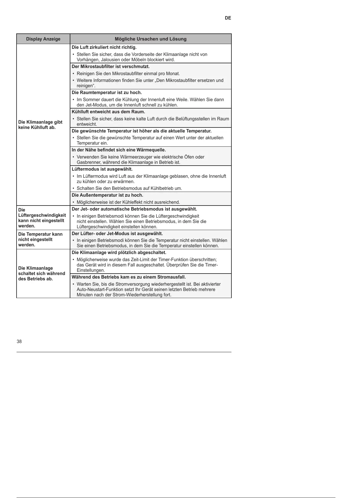 • Im Sommer dauert die Kühlung der Innenluft eine Weile. Wählen Sie dann