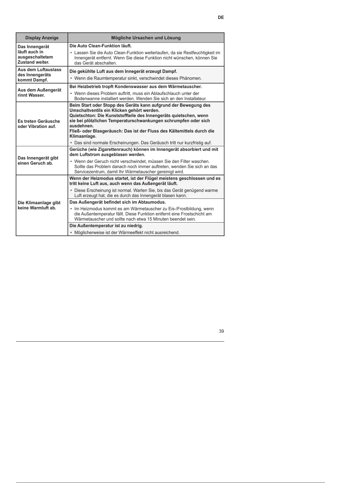 • Das sind normale Erscheinungen. Das Geräusch tritt nur kurzfristig auf.