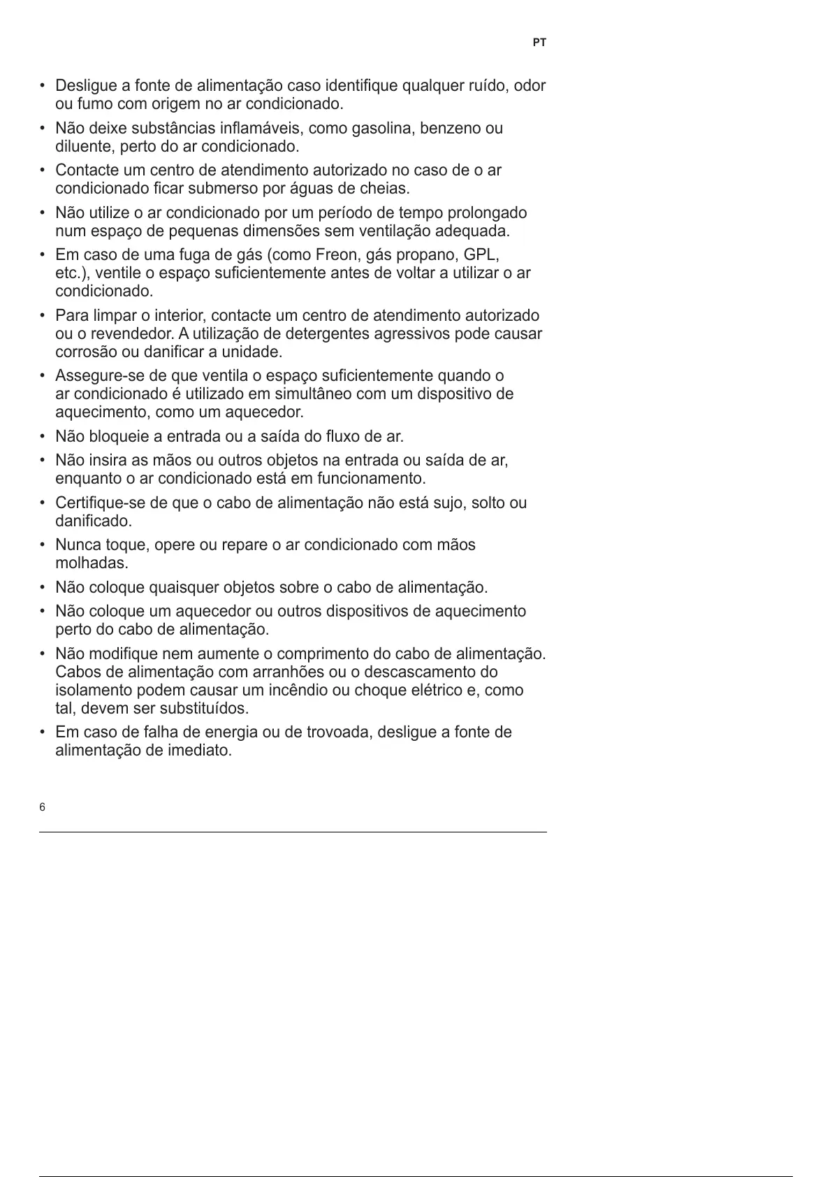 • Não utilize o ar condicionado por um período de tempo prolongado
