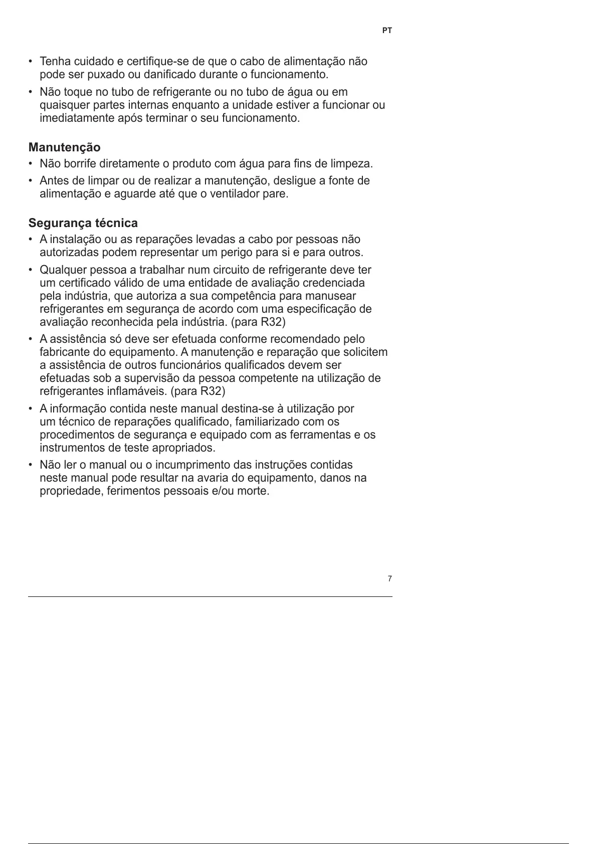 • Qualquer pessoa a trabalhar num circuito de refrigerante deve ter