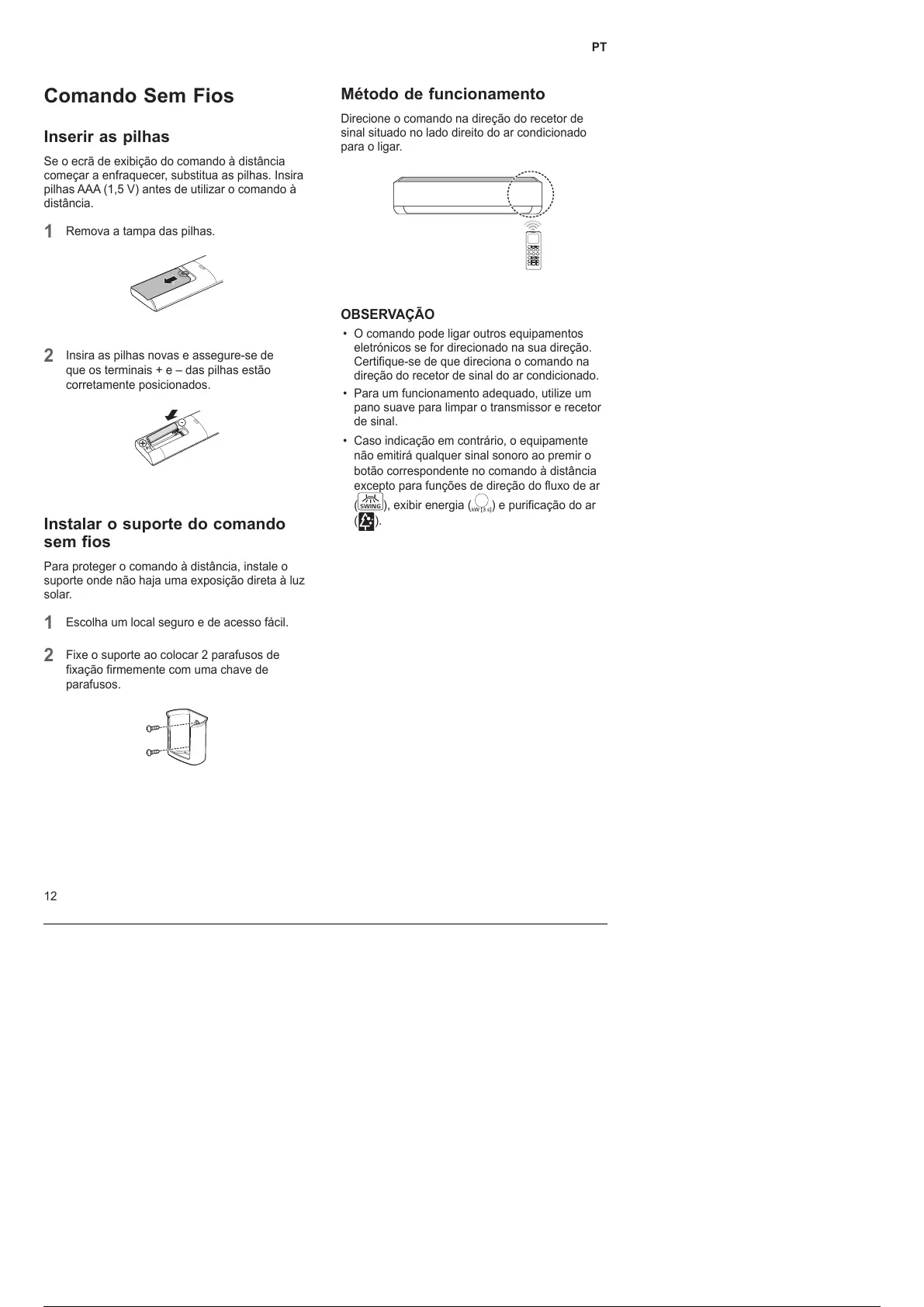 pilhas AAA (1,5 V) antes de utilizar o comando à