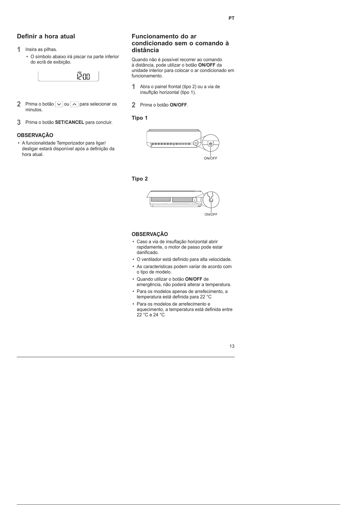 • Para os modelos apenas de arrefecimento, a