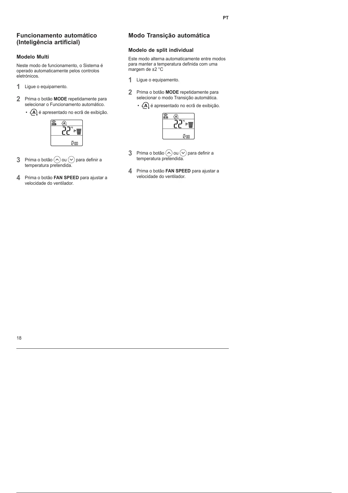 Prima o botão FAN SPEED para ajustar a