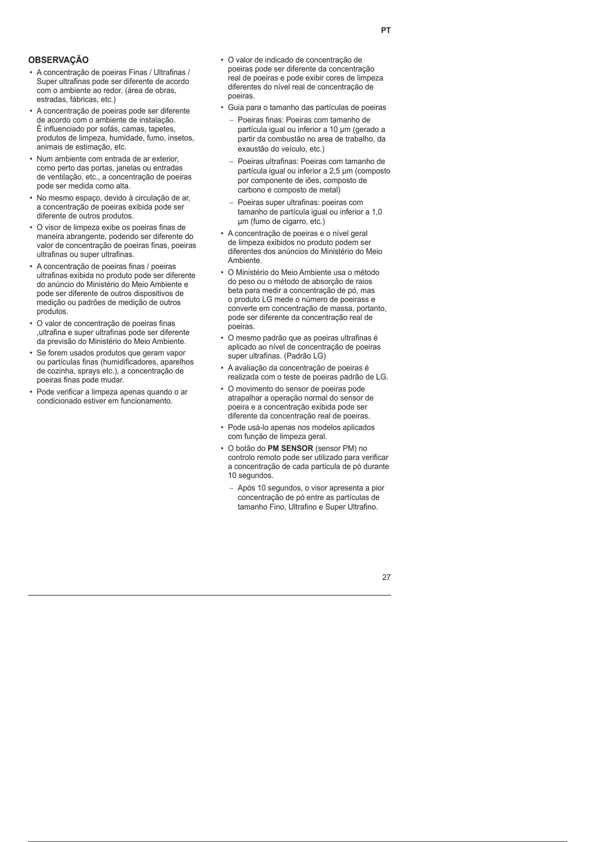 • O botão do PM SENSOR (sensor PM) no