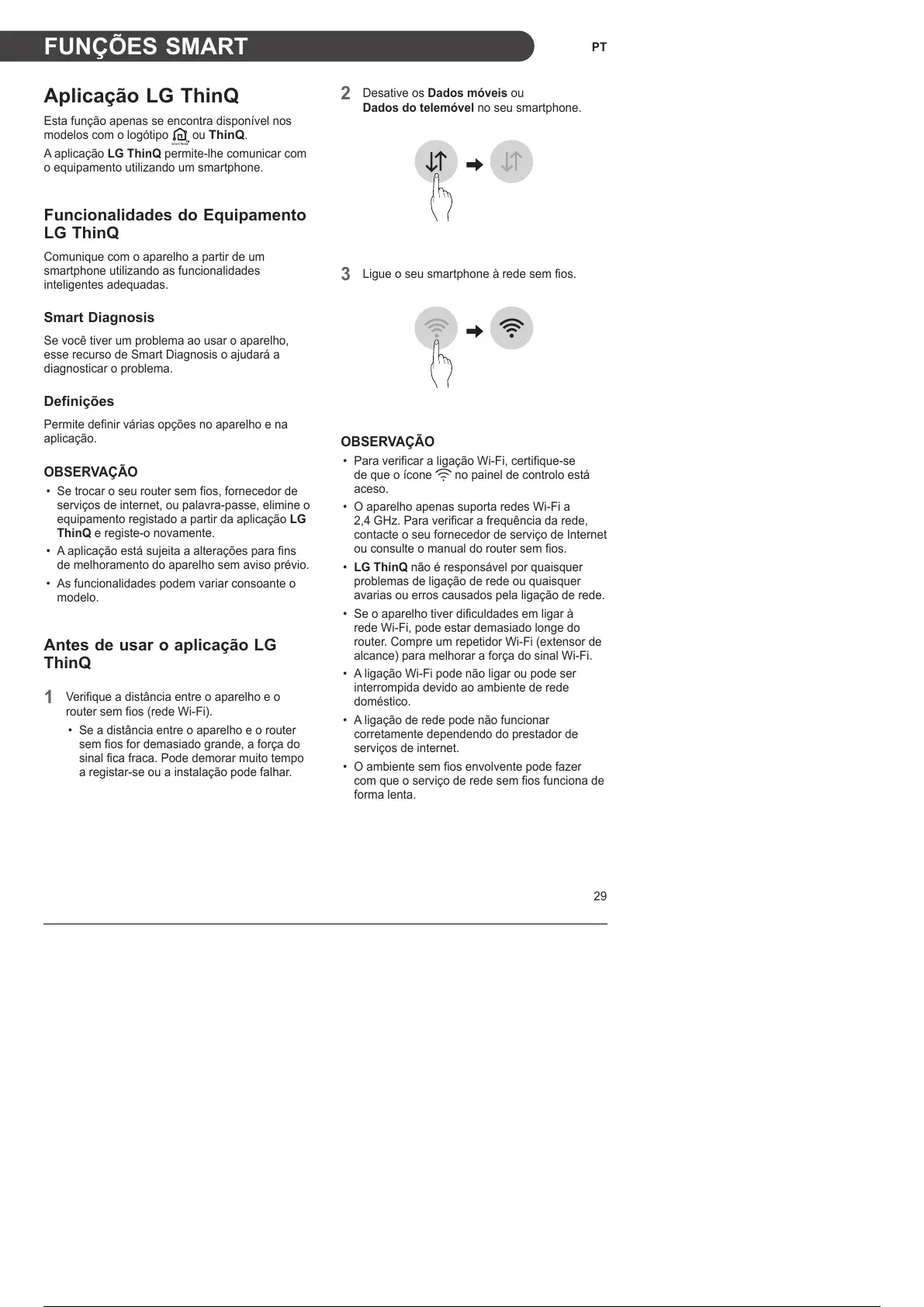 • LG ThinQ não é responsável por quaisquer