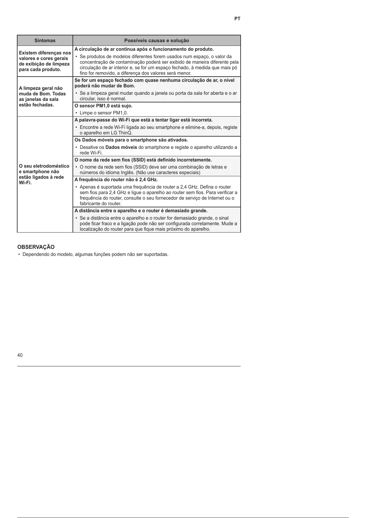 • Dependendo do modelo, algumas funções podem não ser suportadas.