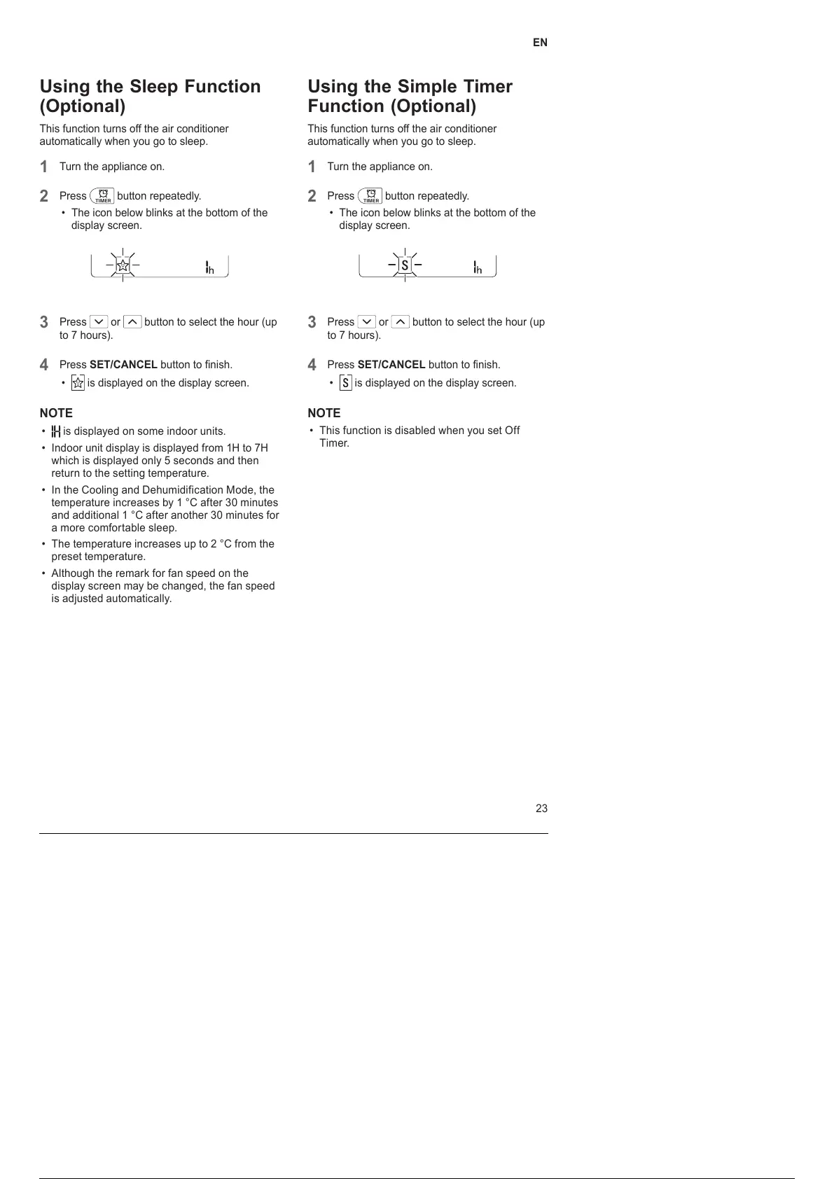 • Indoor unit display is displayed from 1H to 7H
