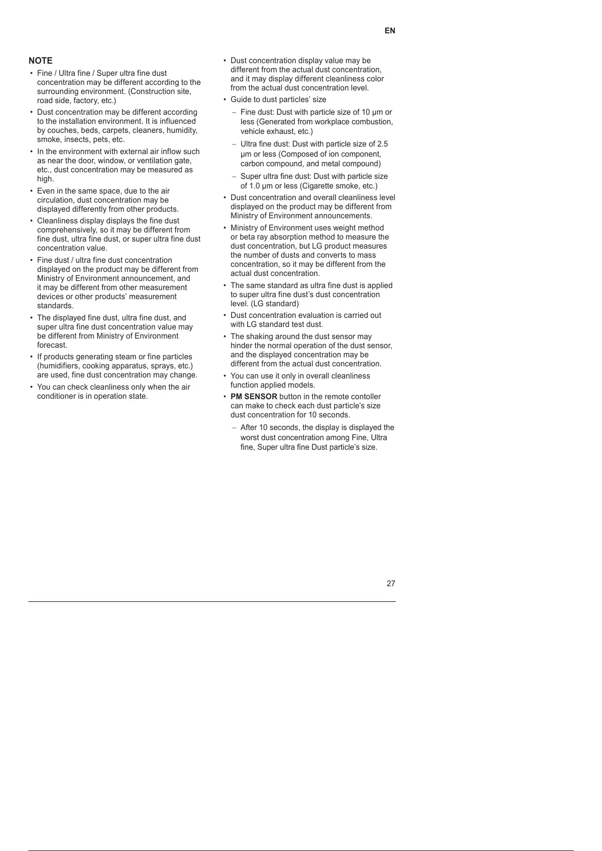 dust concentration, but LG product measures