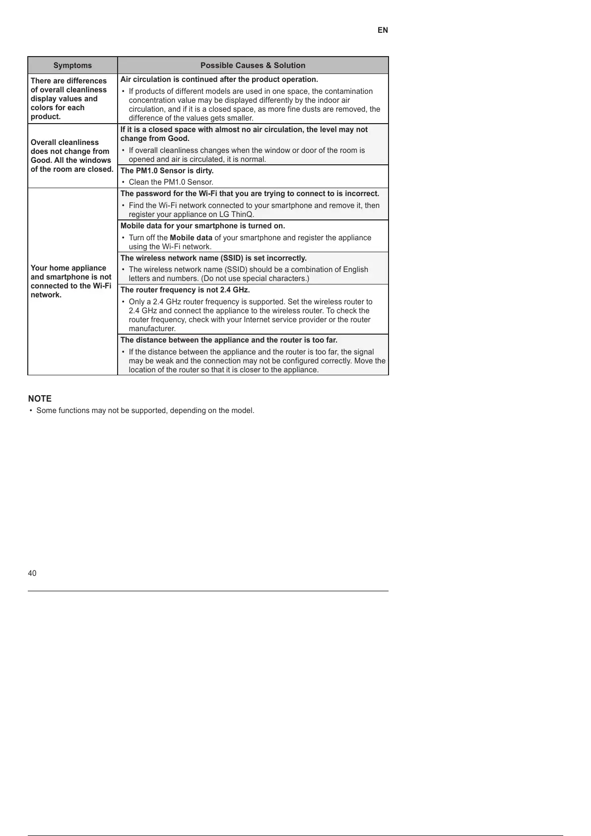 • Some functions may not be supported, depending on the model.