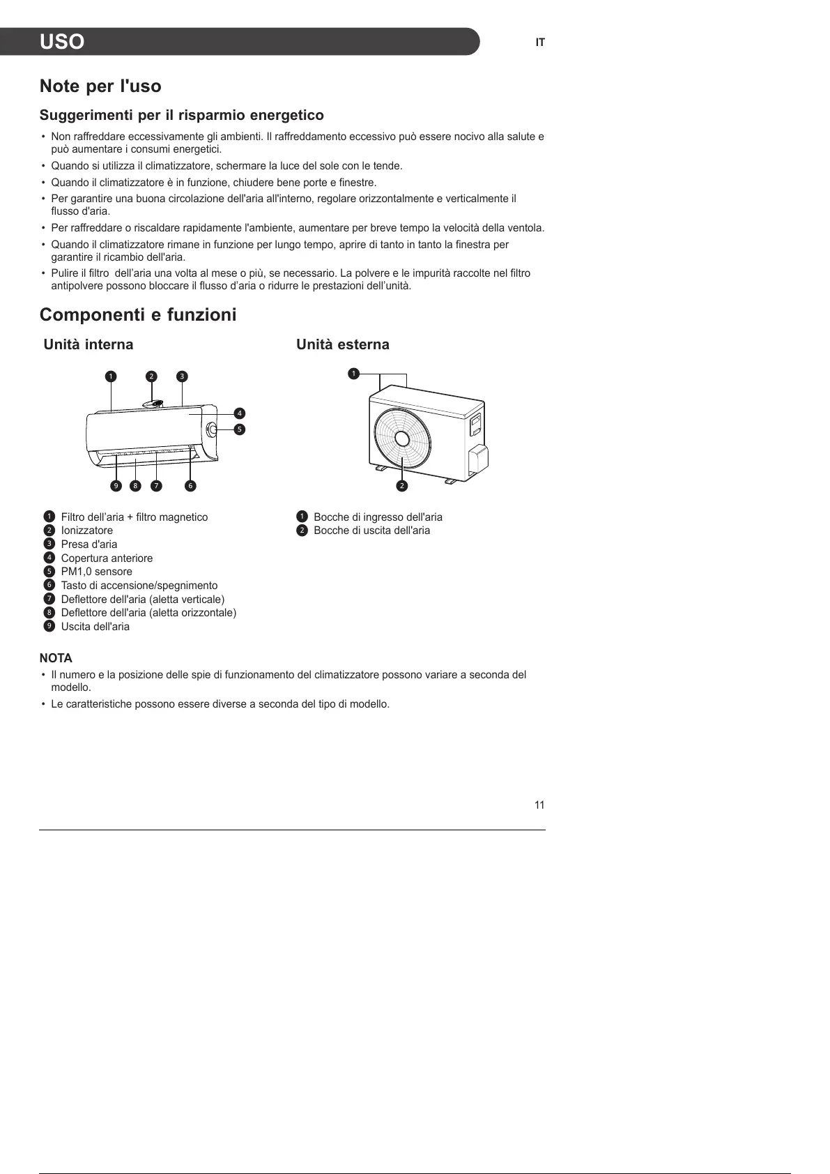 • Per raffreddare o riscaldare rapidamente l'ambiente, aumentare per breve tempo la velocità della ventola.