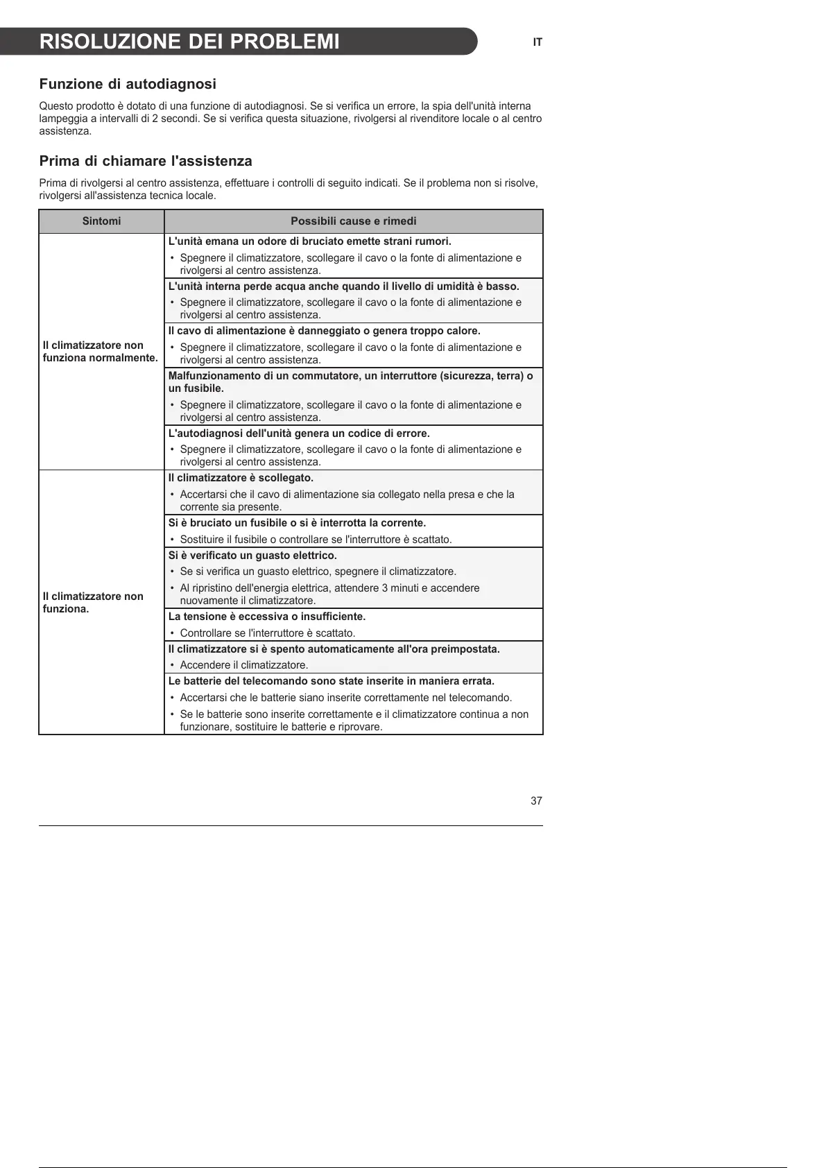 Questo prodotto è dotato di una funzione di autodiagnosi. Se si verifica un errore, la spia dell'unità interna