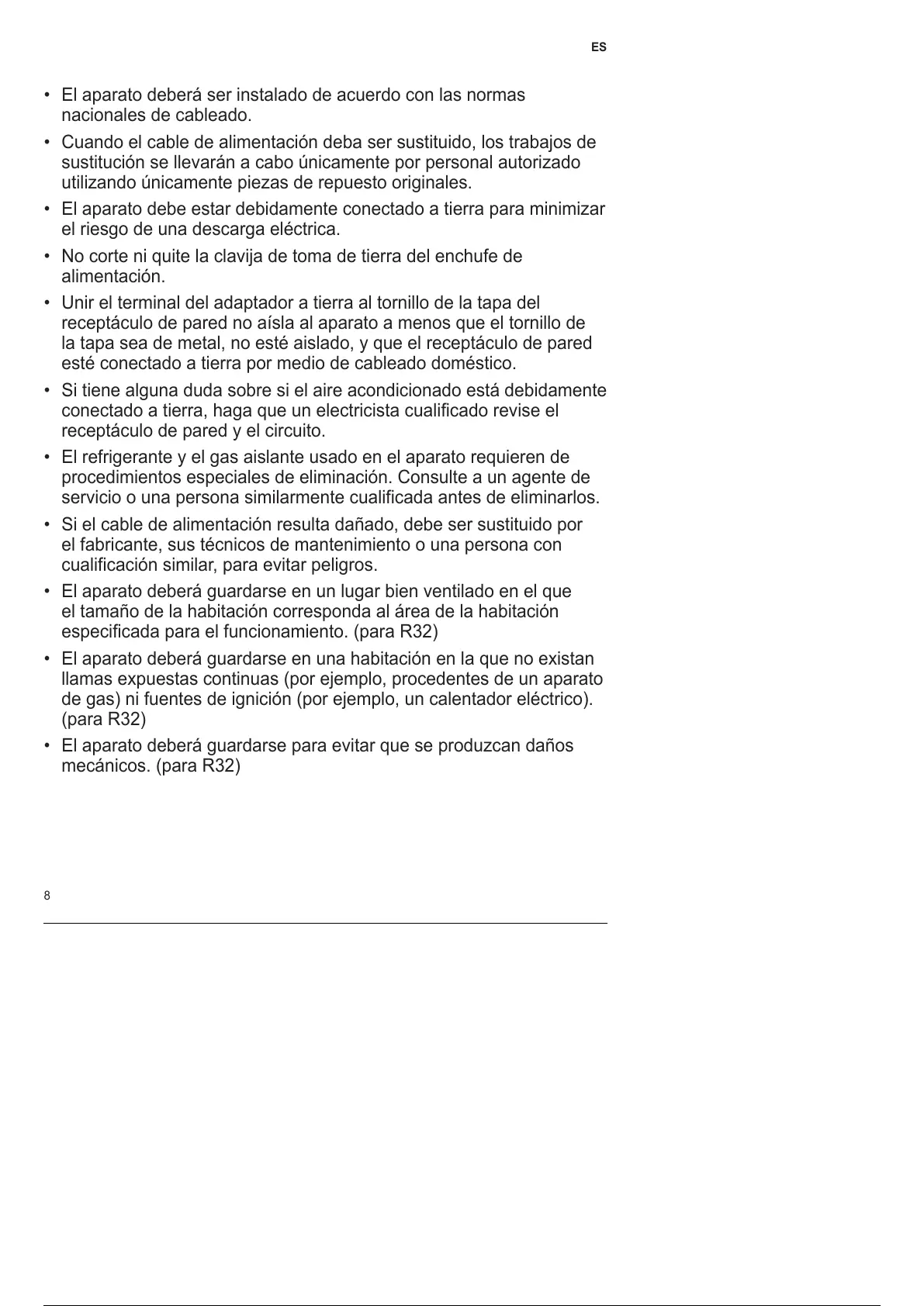 • Cuando el cable de alimentación deba ser sustituido, los trabajos de