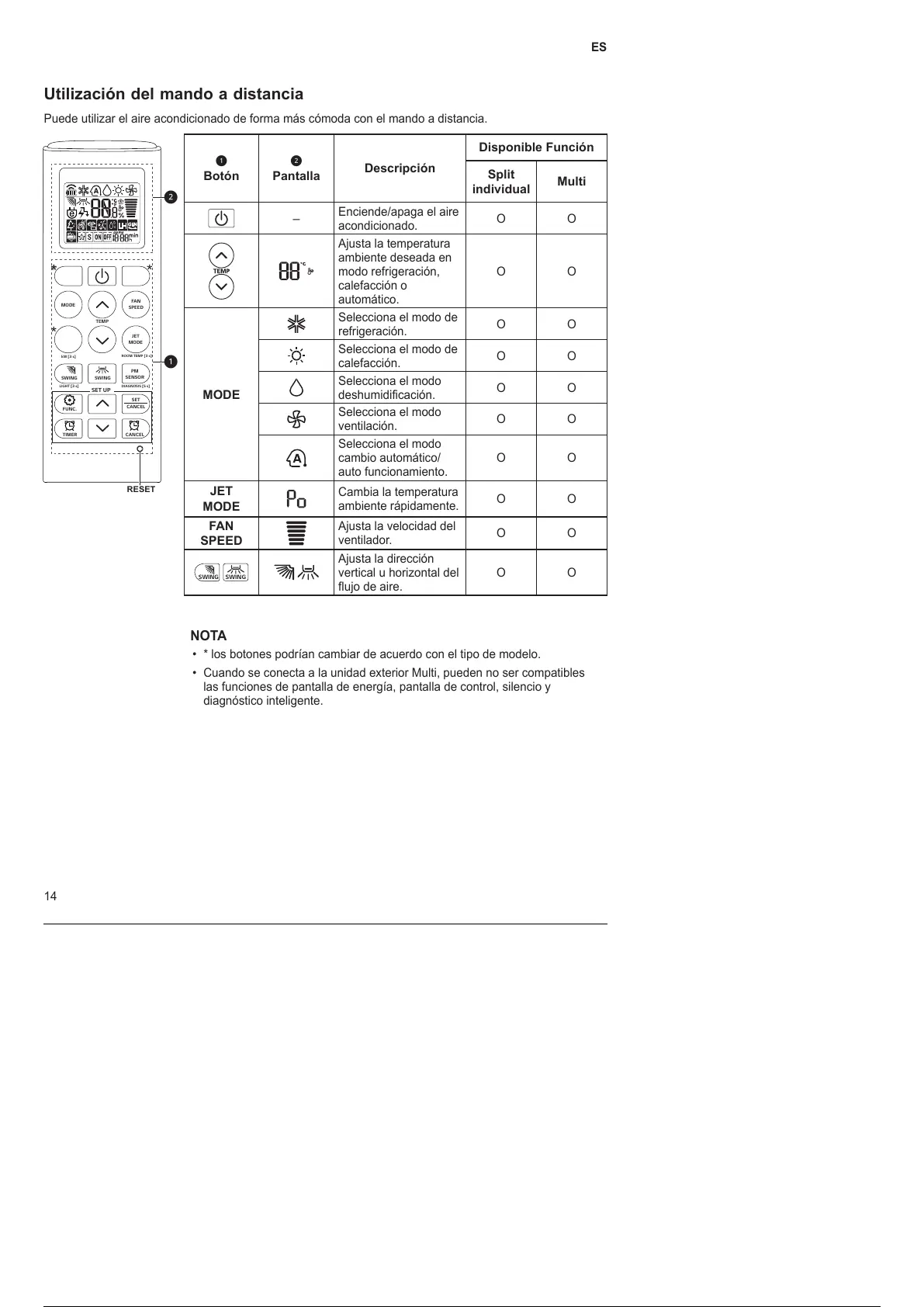 Cuando se conecta a la unidad exterior Multi, pueden no ser compatibles