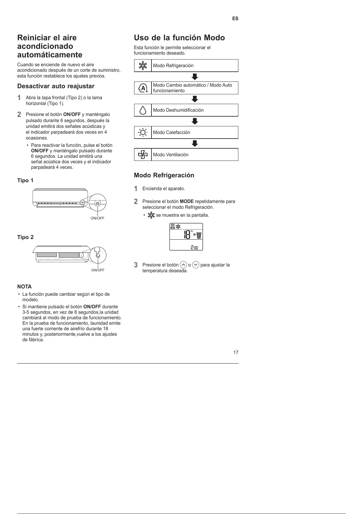 seleccionar el modo Refrigeración.