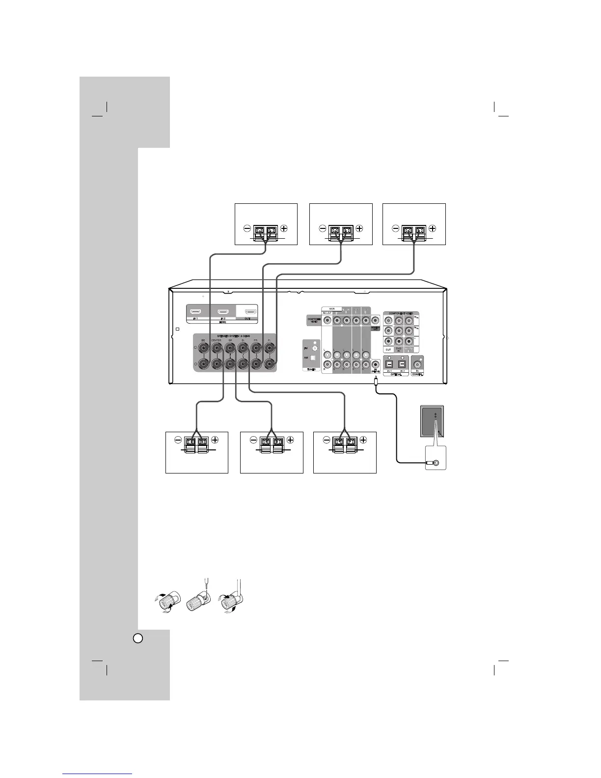 •Turn the unit off before connecting the speakers