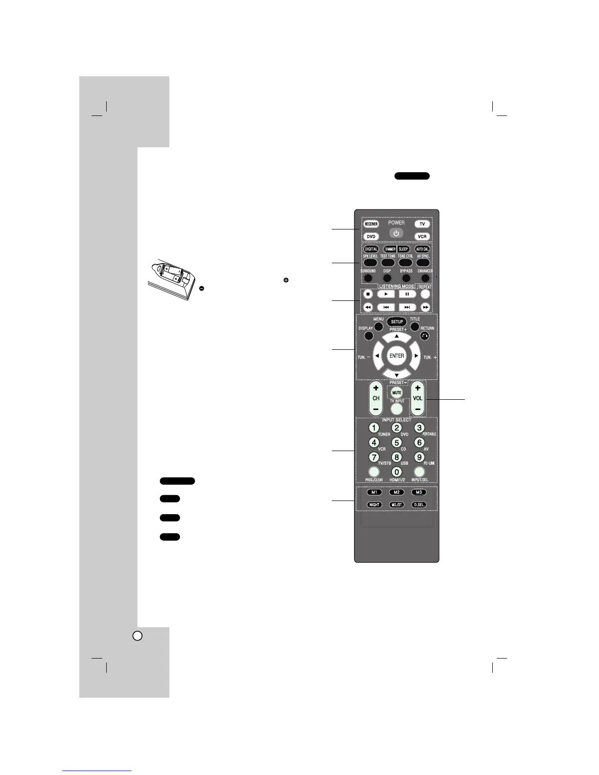 To set the remote control to RECEIVER mode,