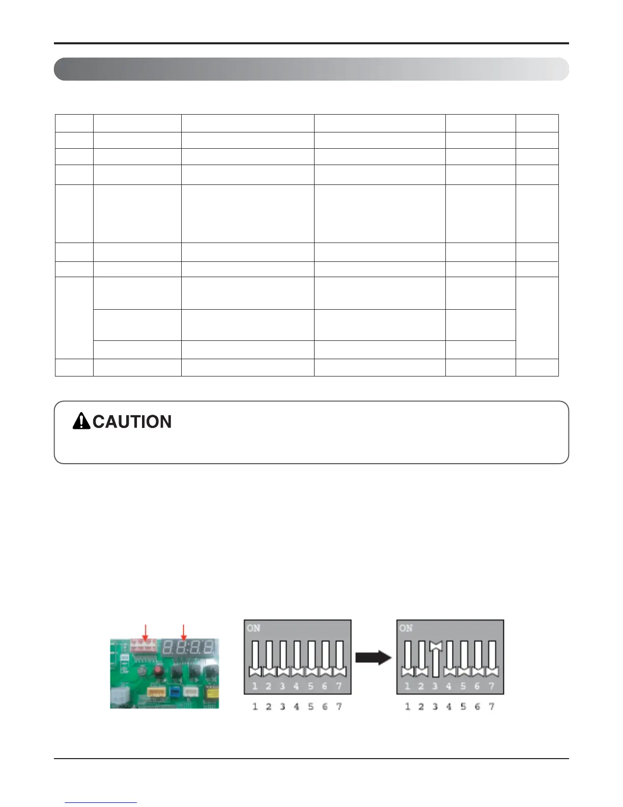 For Multi V Models, DIP switch 1, 2, 6, 8 must be set OFF.
