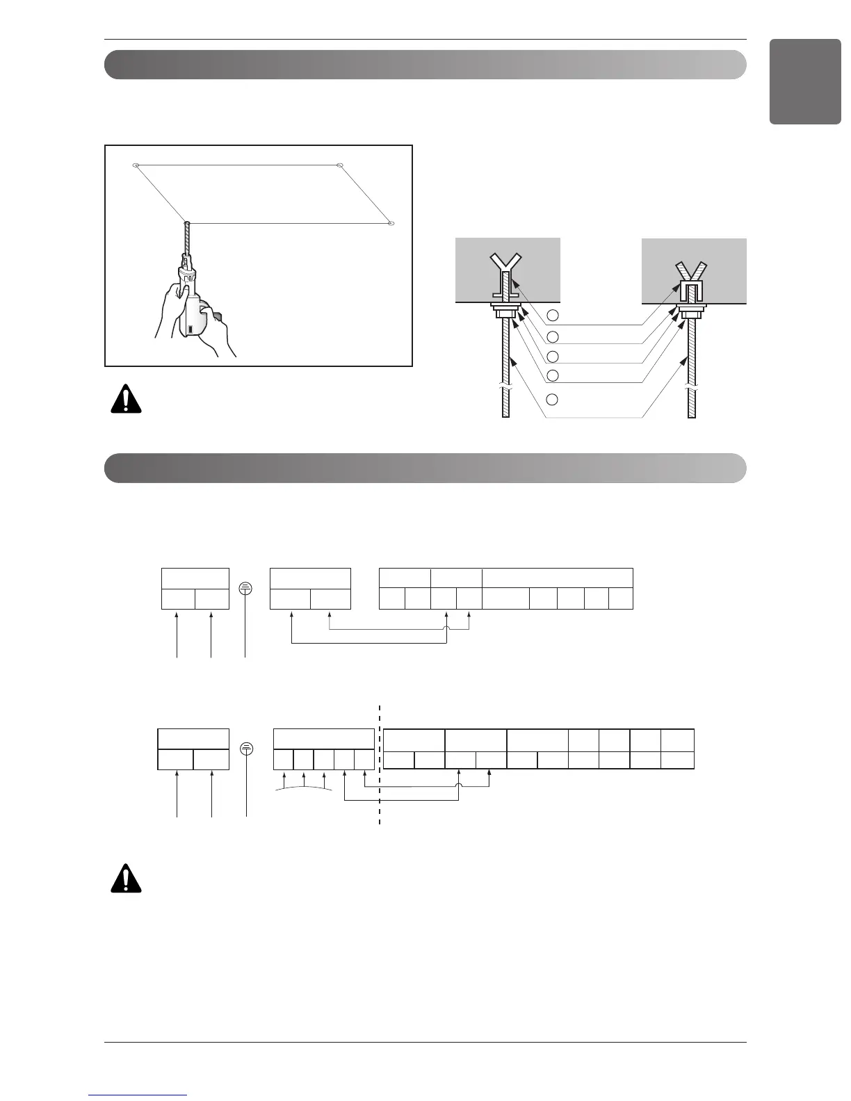 • Ensure that the color of the wires of outdoor unit and the terminal No. are the same as those of indoor unit respectively.