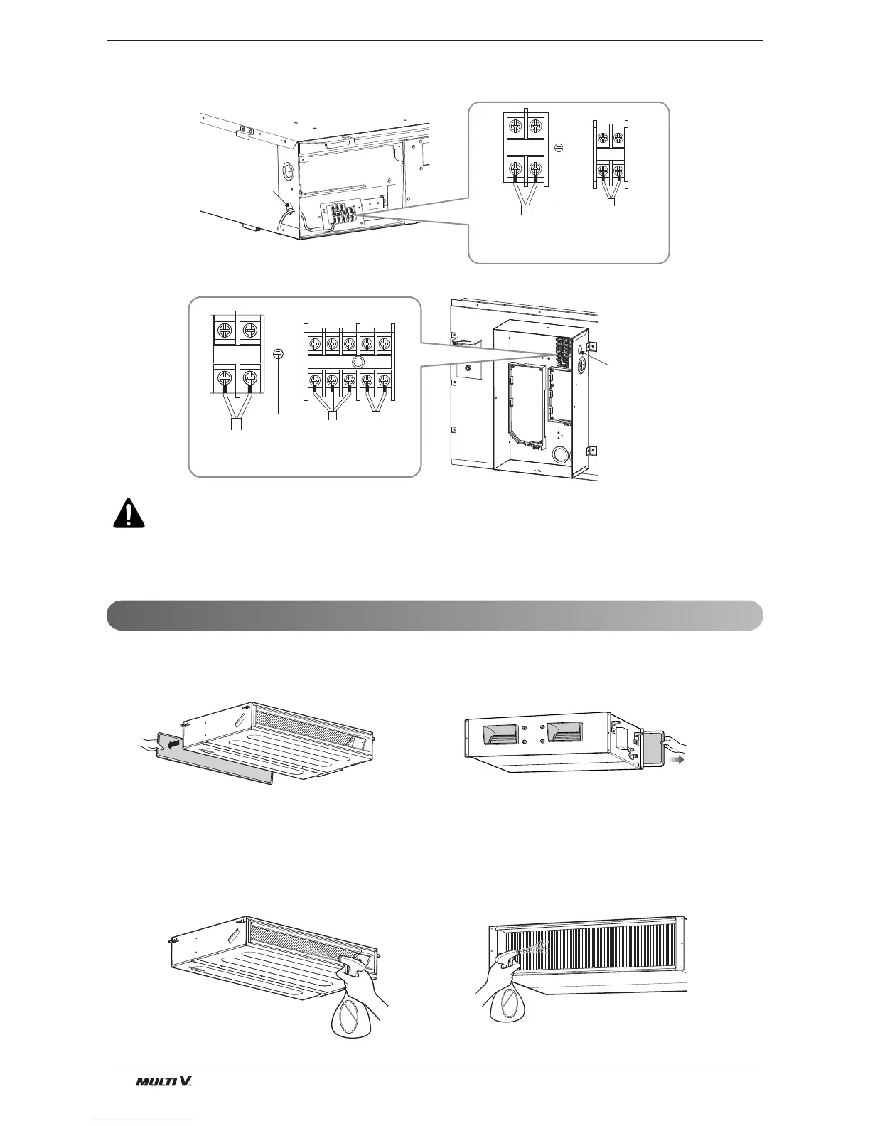 WARNING : Loose wiring may cause the terminal to overheat or result in unit