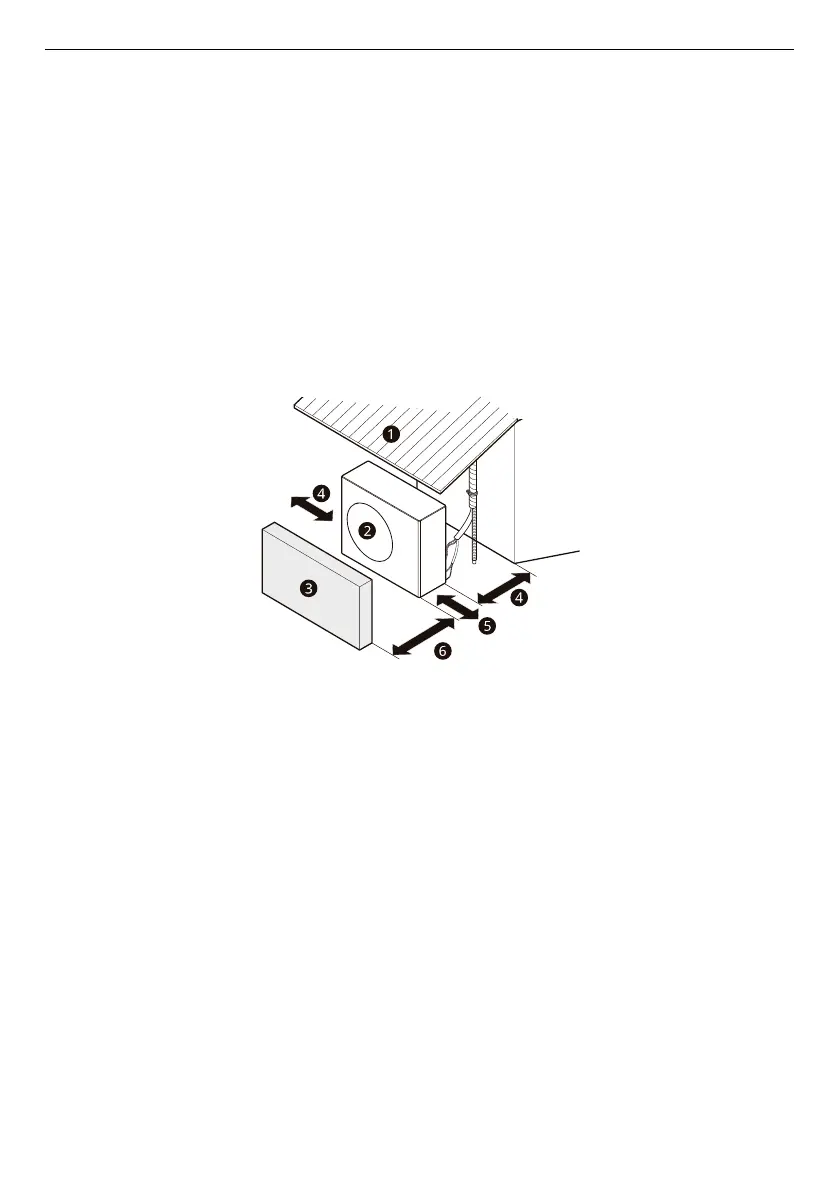 • If an awning is built over the unit to prevent direct sunlight or rain exposure, make sure that heat