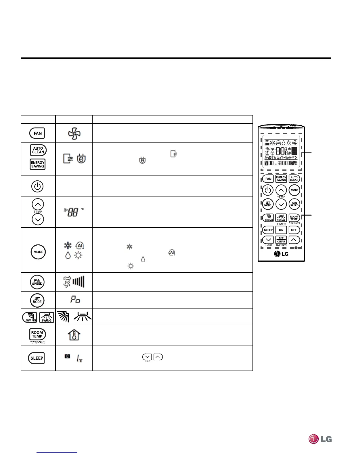Jet Button (Heating/Cooling)*: Rapid heating or cooling of indoor