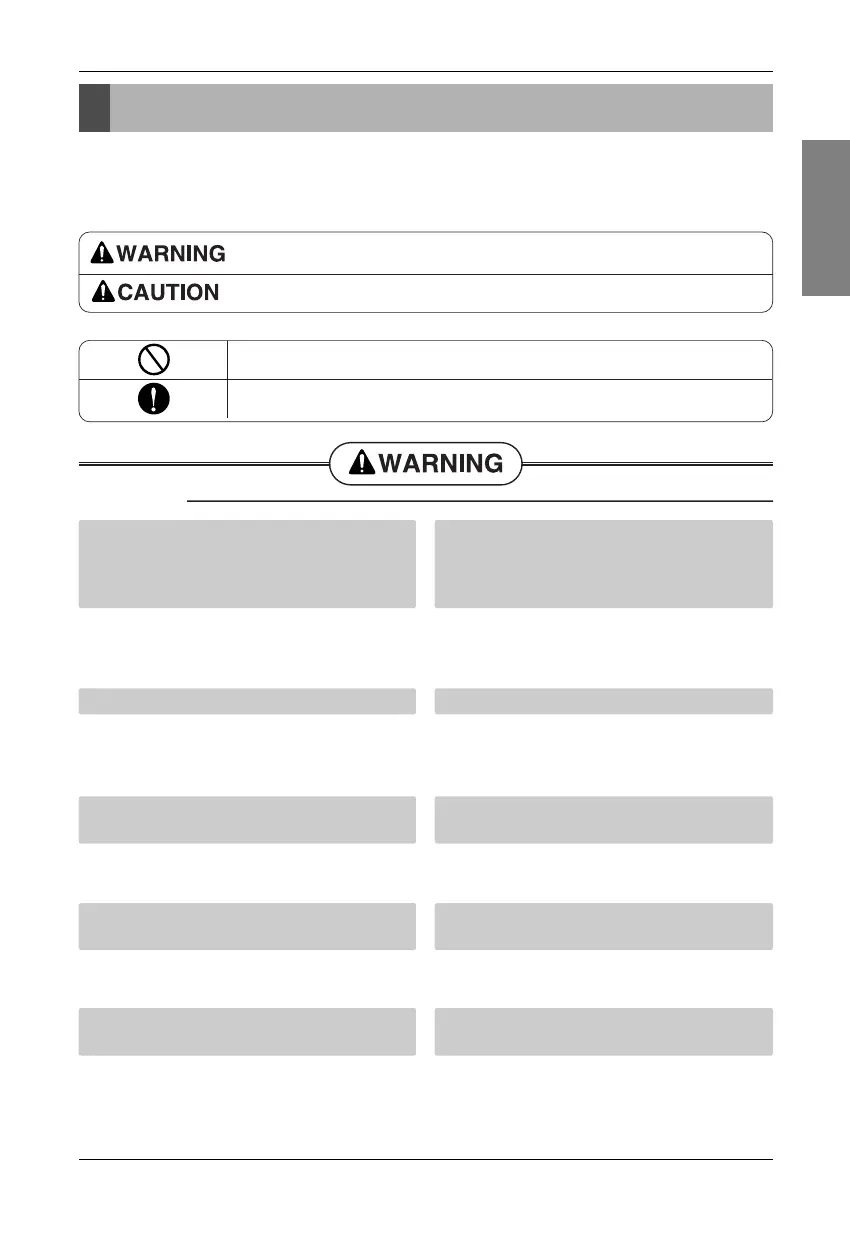 ■ Incorrect operation due to ignoring instruction will cause harm or damage. The seriousness is