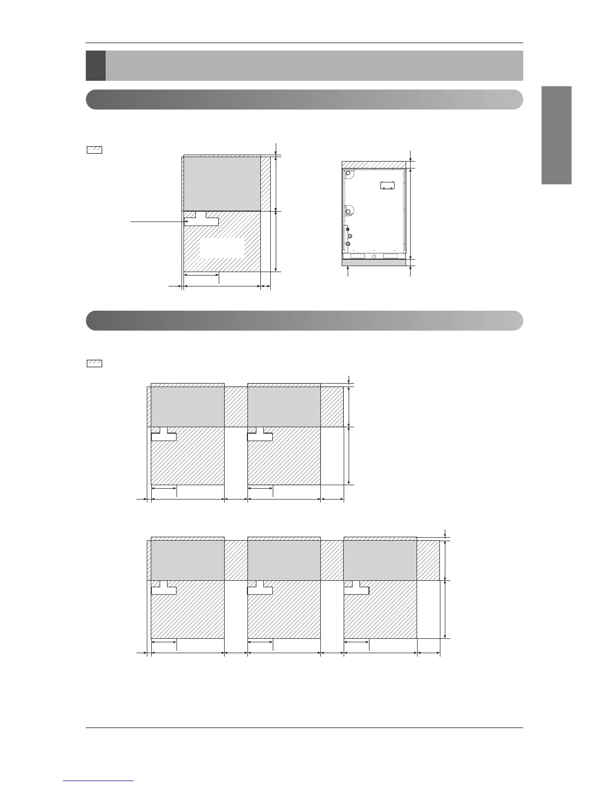 Space required for collective installation and continuous installation as shown below considering passage for air