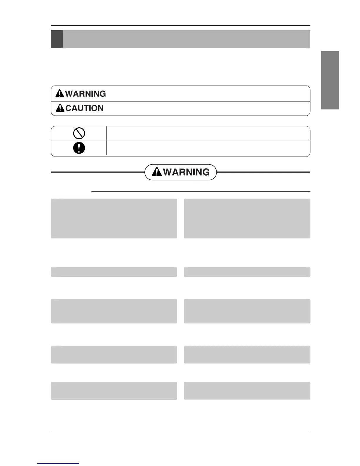 ■ Incorrect operation due to ignoring instruction will cause harm or damage. The seriousness is