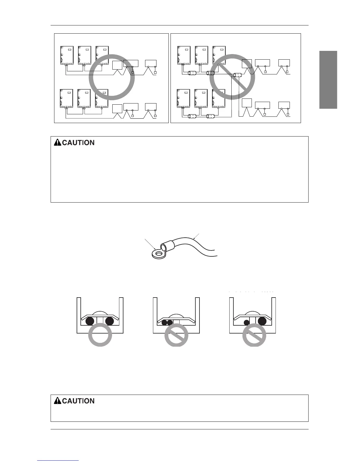 • Use an appropriate screwdriver for tightening the terinal screws. A screwdriver with a small head will
