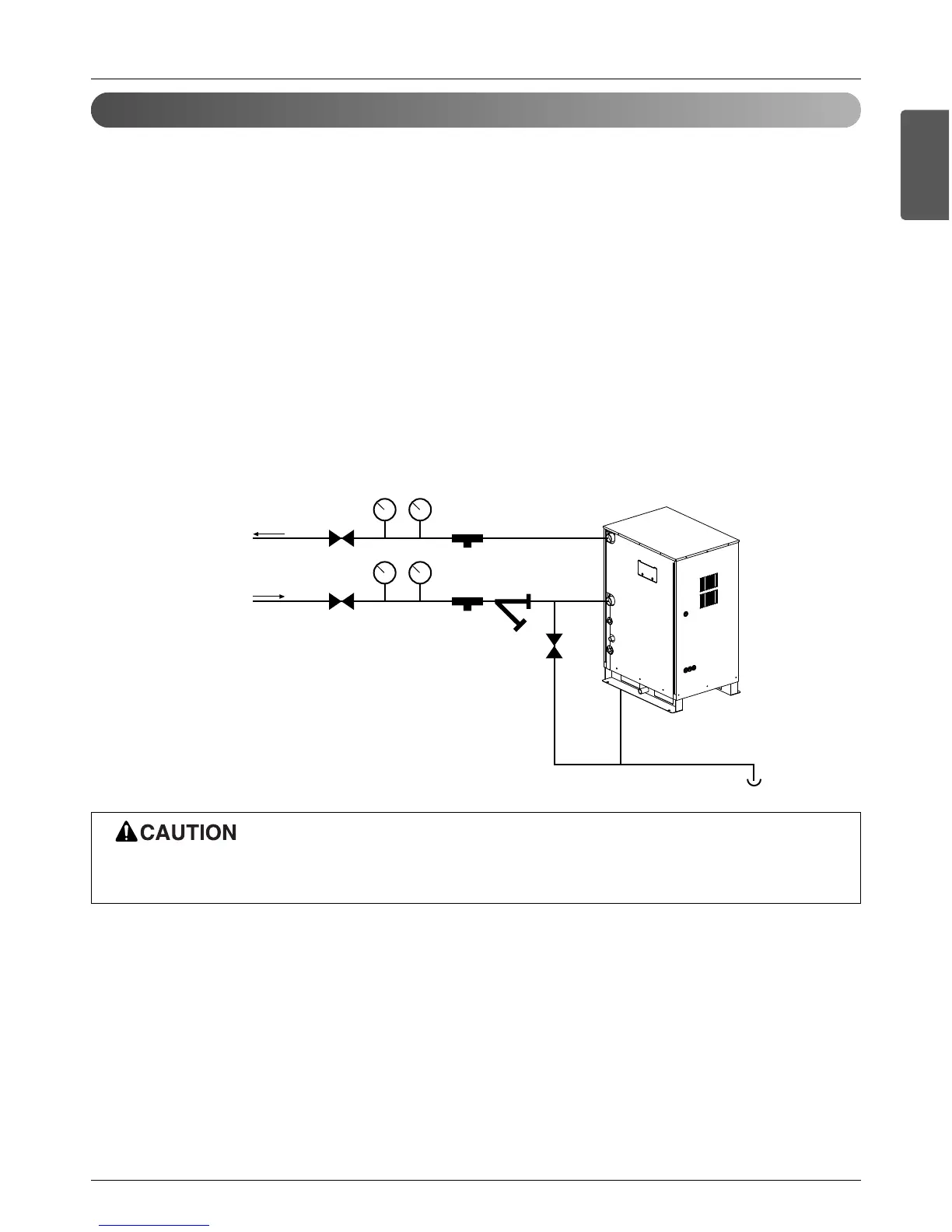 • Install a service port to clean the heat exchanger at the each end of the water inlet and outlet.