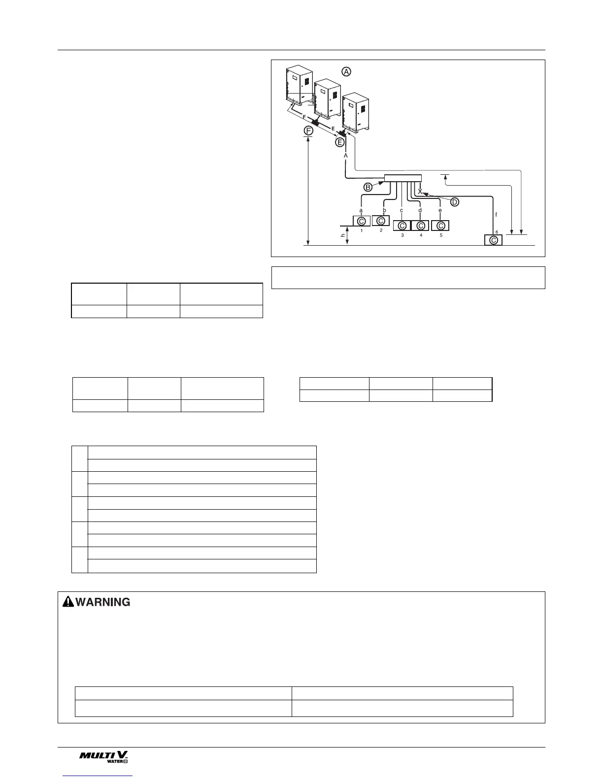 • For the pipe length after the header branch (a~f), it is recommended to install the unit so that the difference of the pipe distance connected to