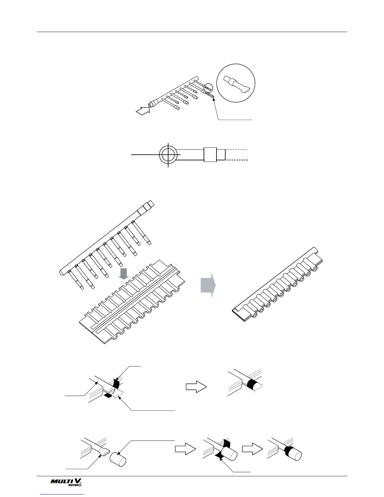 • Any cap pipe should be insulated using the insulator provided with each kit and then taped as described