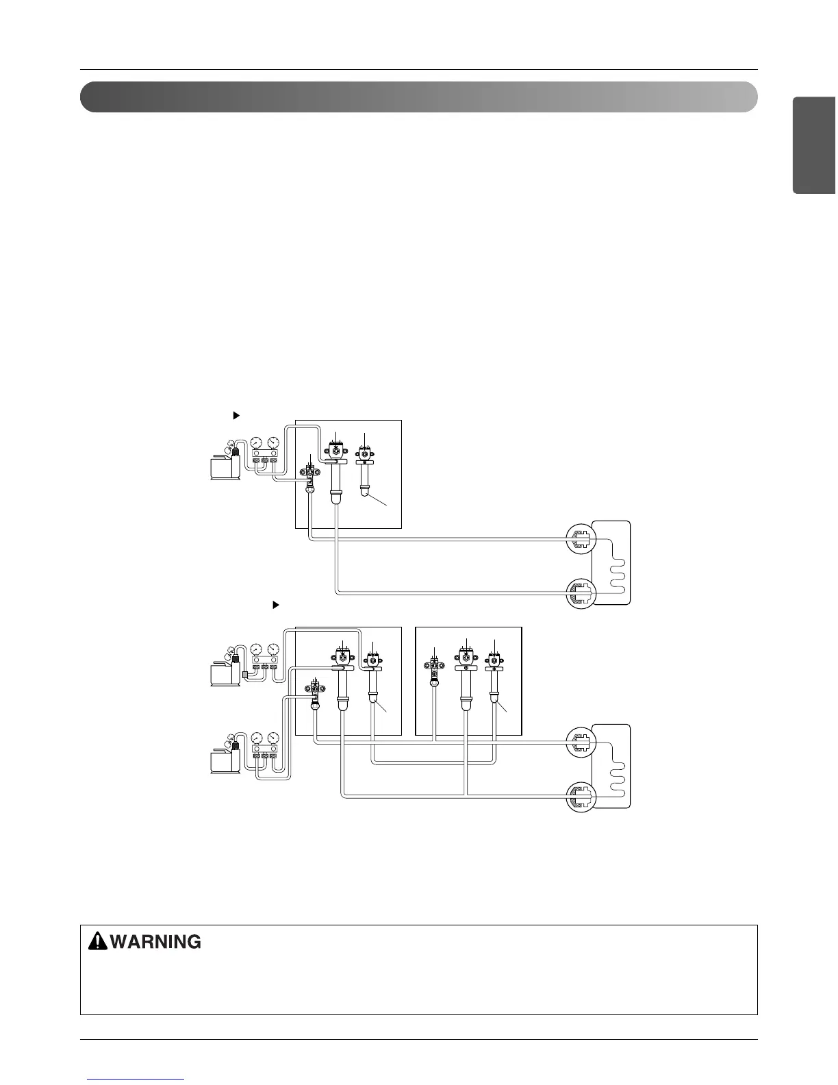 1. Evacuate the system from the liquid and gas pipes with a vacuum pump for over 2 hrs and bring the system