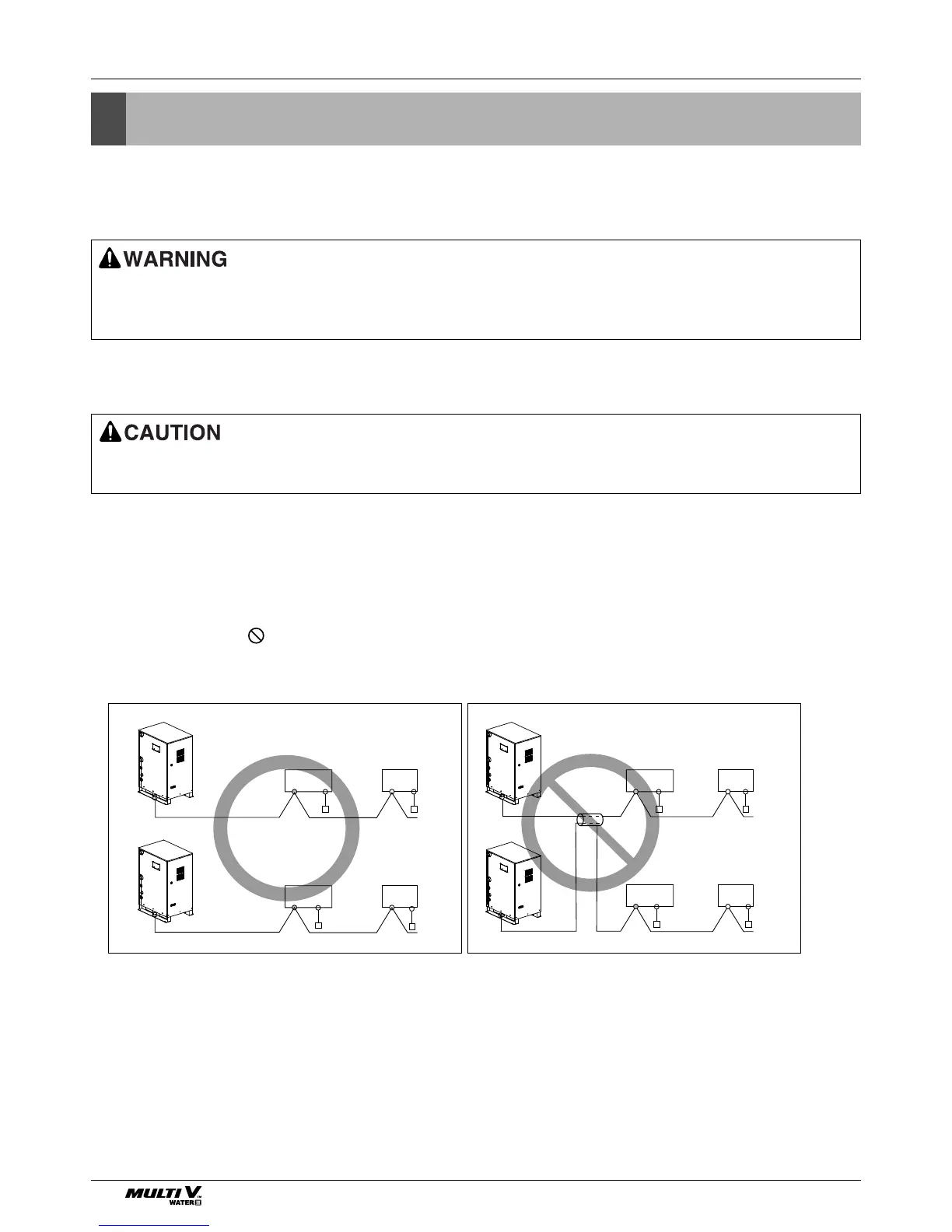 2. Install the Outside Unit transmission line away from the power source wiring so that it is not affected by elec-