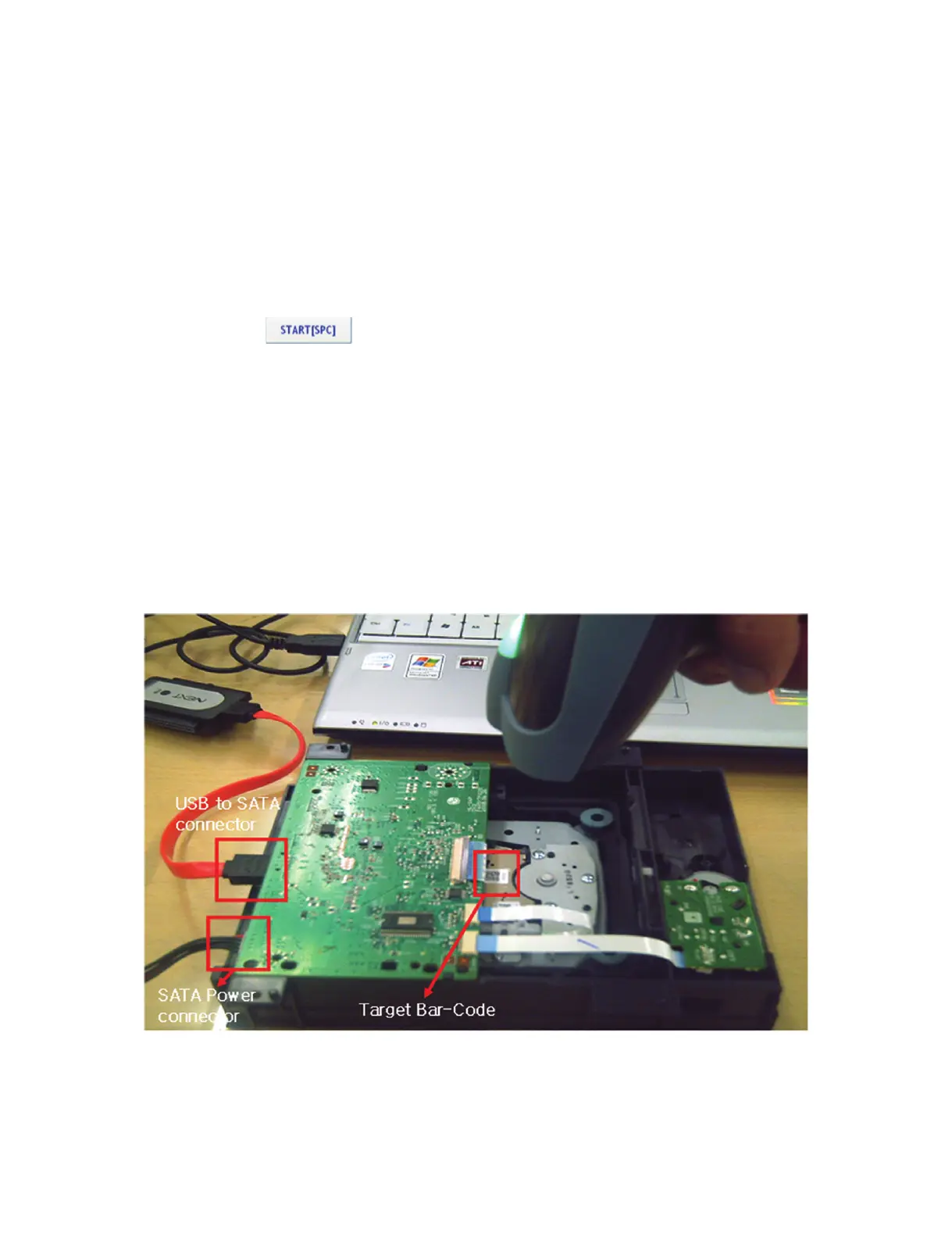 3) Connect the “USB to SATA connector” to the PC.