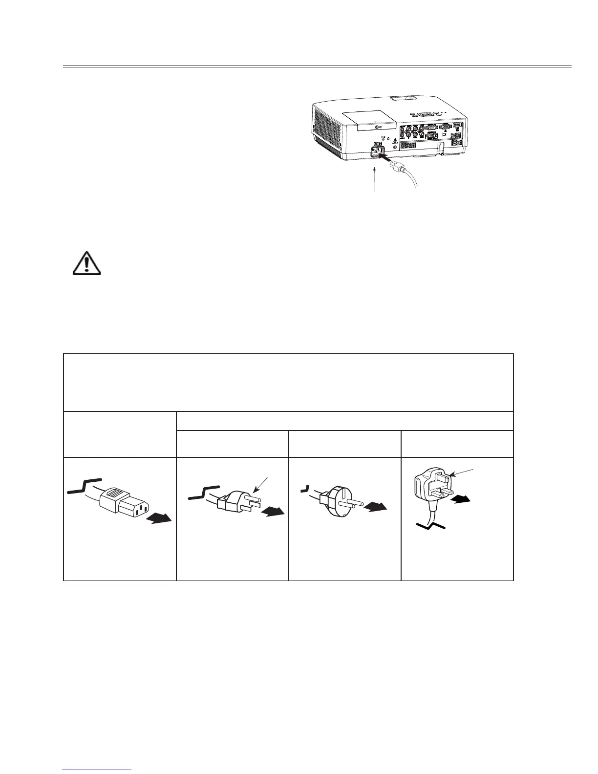 AC power cord must meet the requirements of the country where you use the projector. Conrm the AC