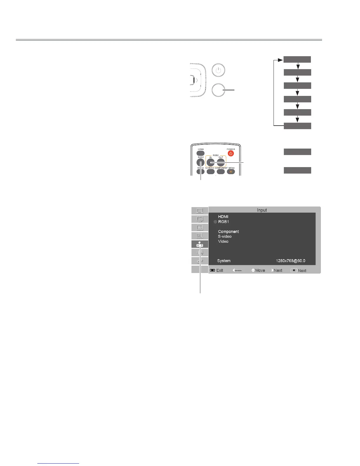 2 Press ▲▼ button to select RGB 1 or RGB 2,
