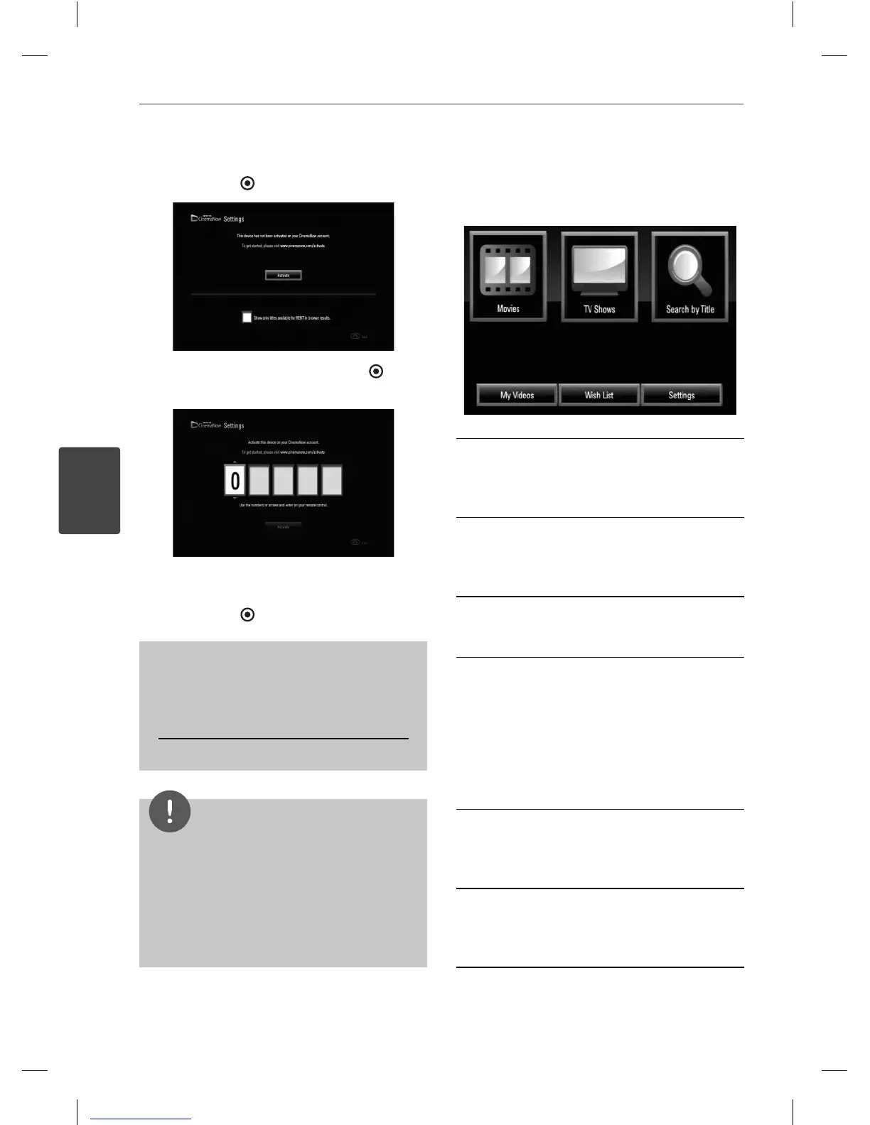 CinemaNow service on your player using