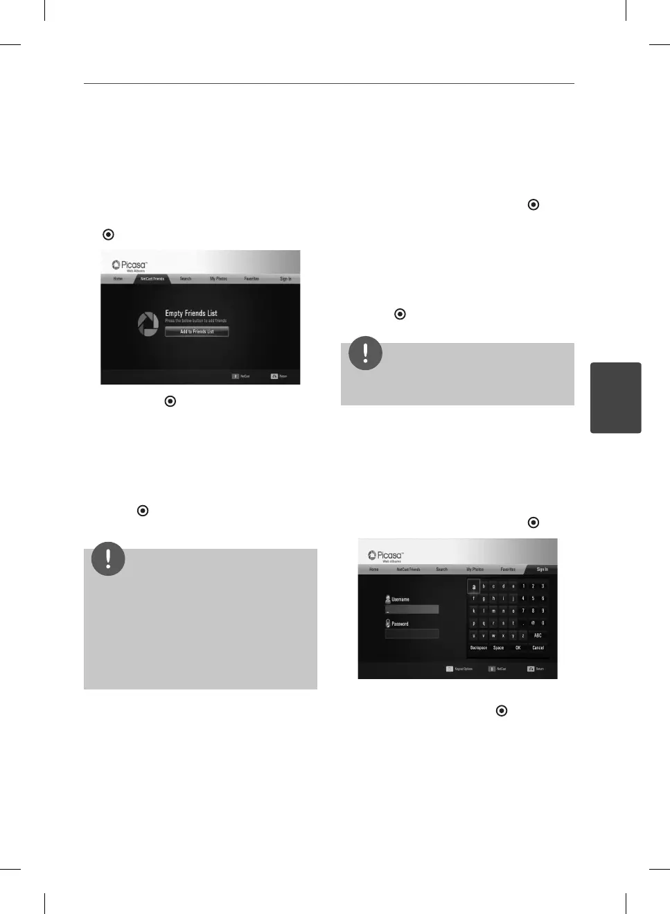 1. Select the [NetCast Friends] on the Picasa™