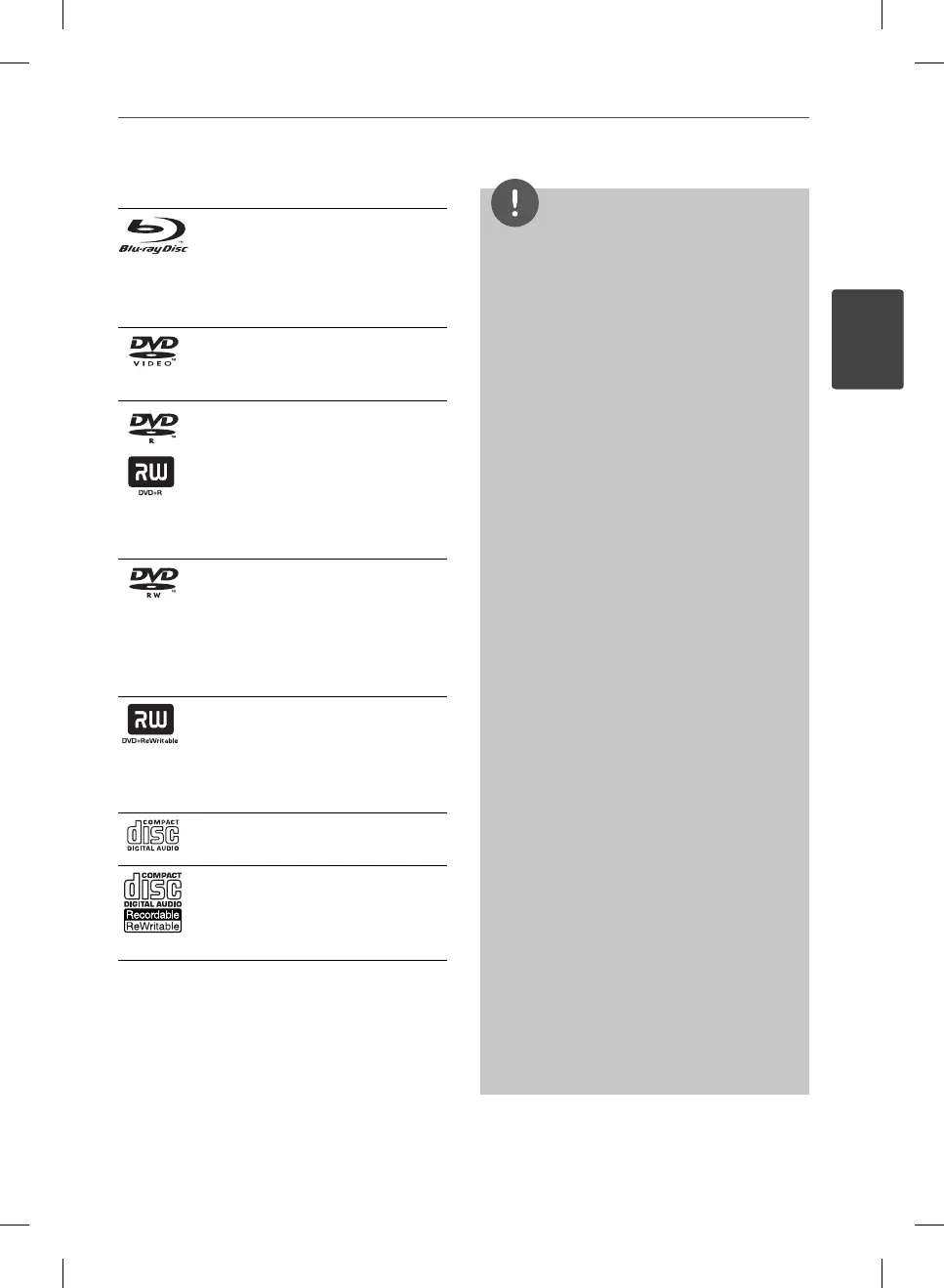 ±R/RW, BD-R/RE) may not be playable.