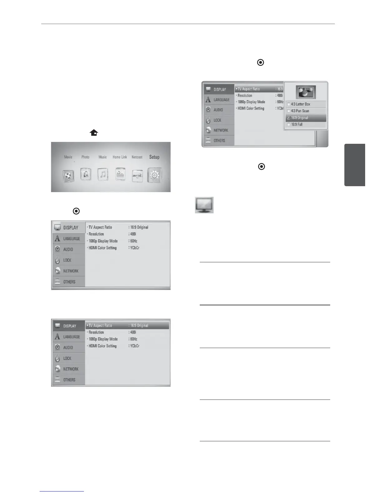 Select a TV aspect ratio option according to