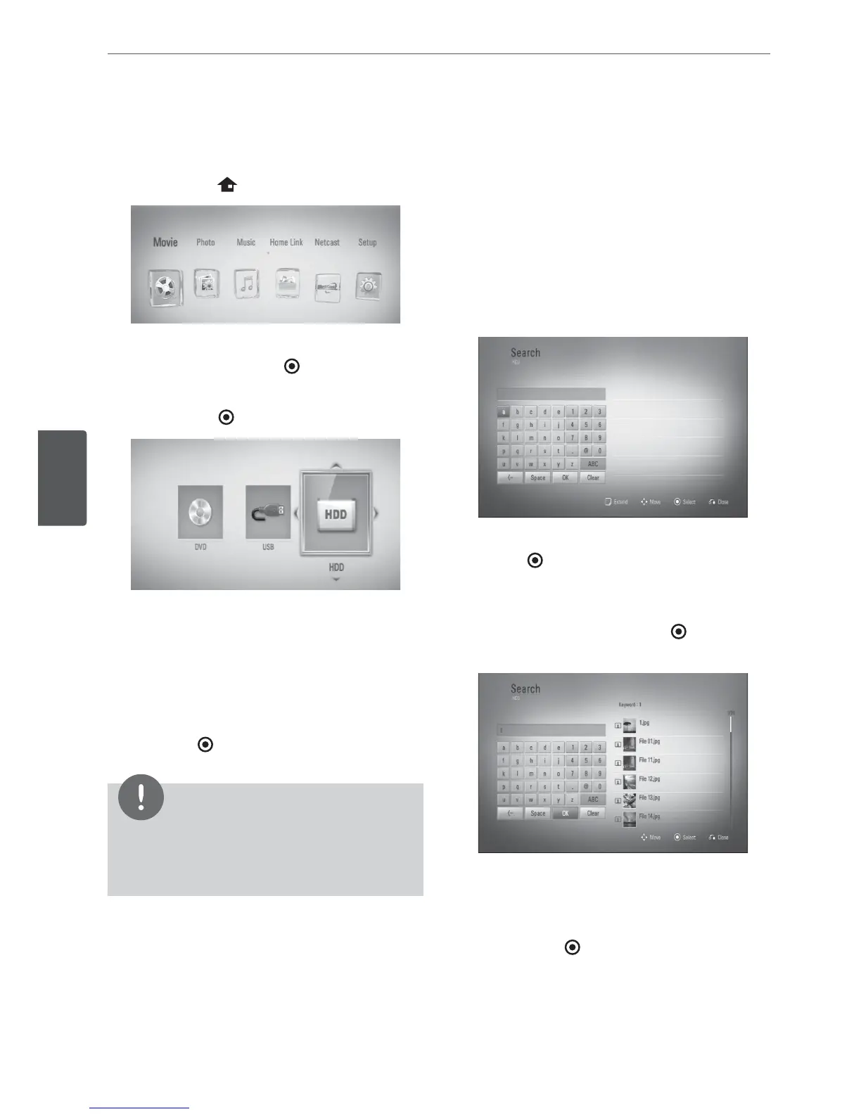 1. On the [Movie], [Photo], [Music] or Home