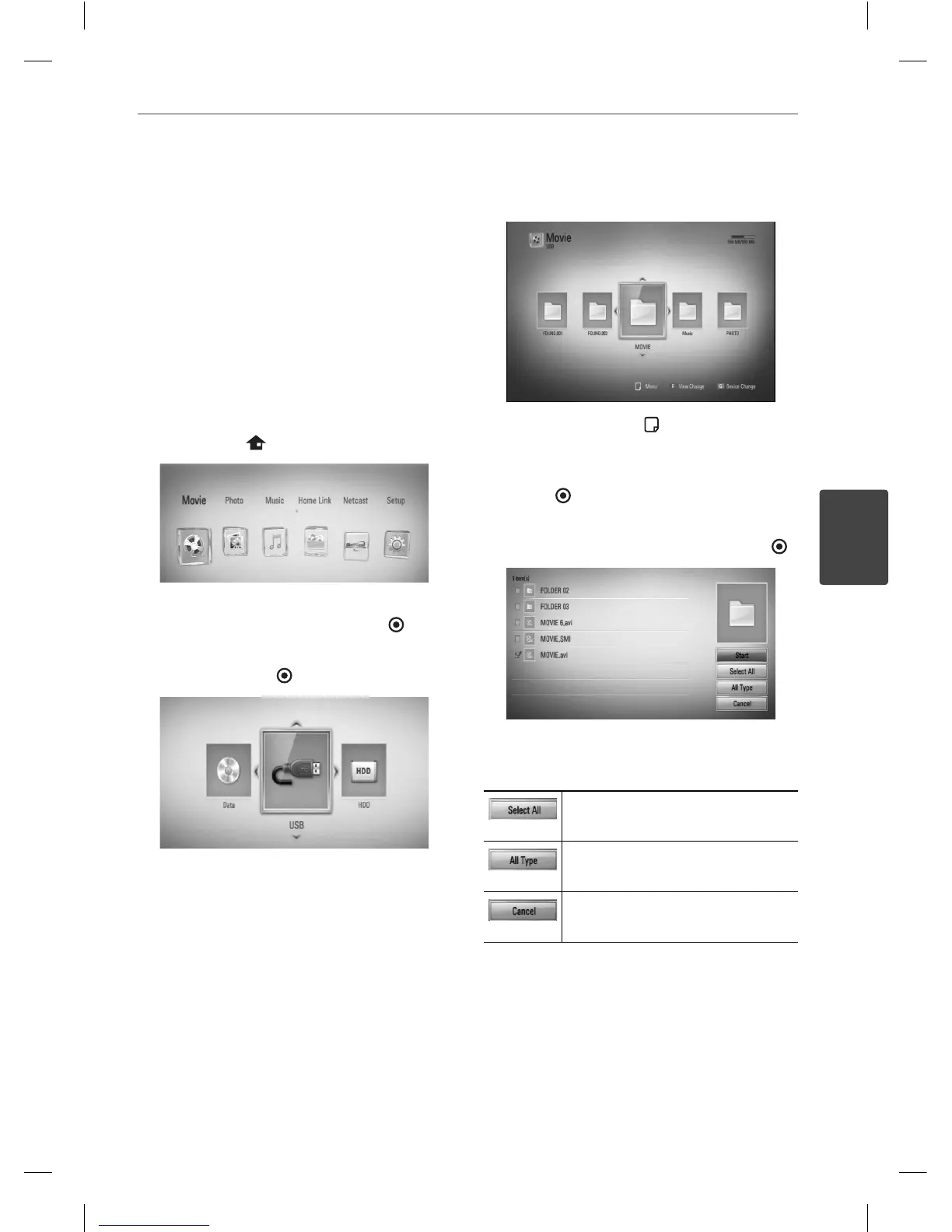 2. Select [Movie], [Photo], [Music] or [Home